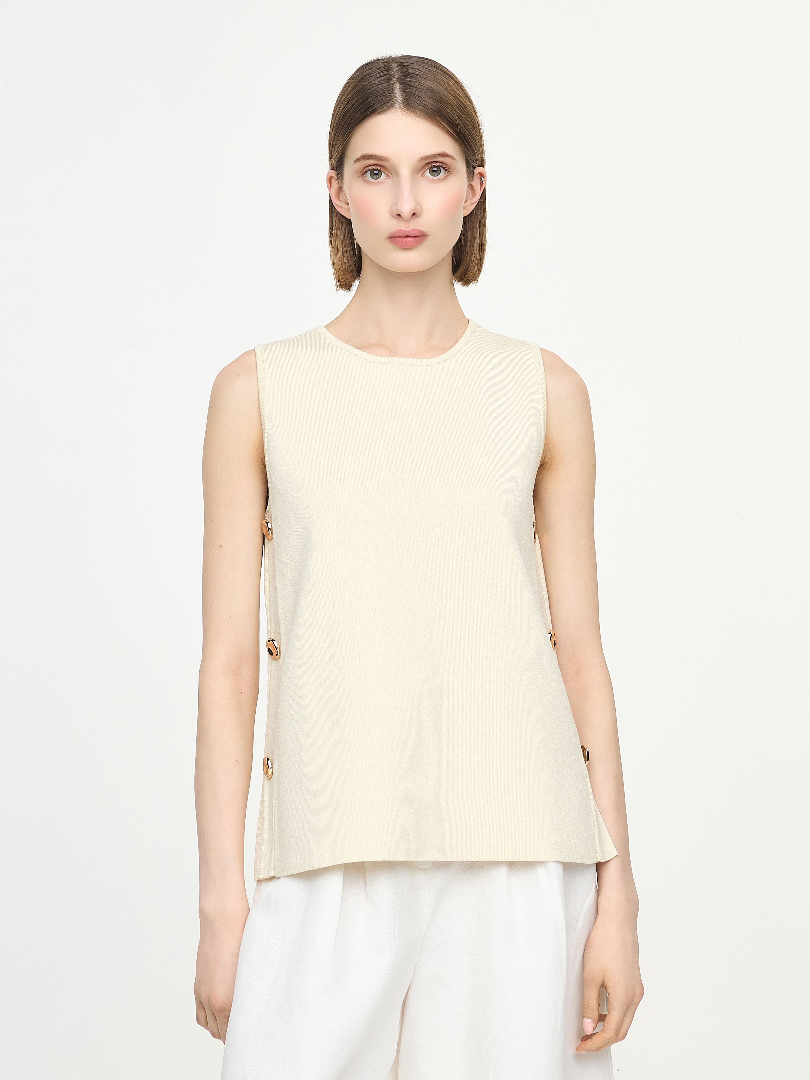 ТОП БЕЗ РУКАВОВ С БОКОВЫМИ ПУГОВИЦАМИ