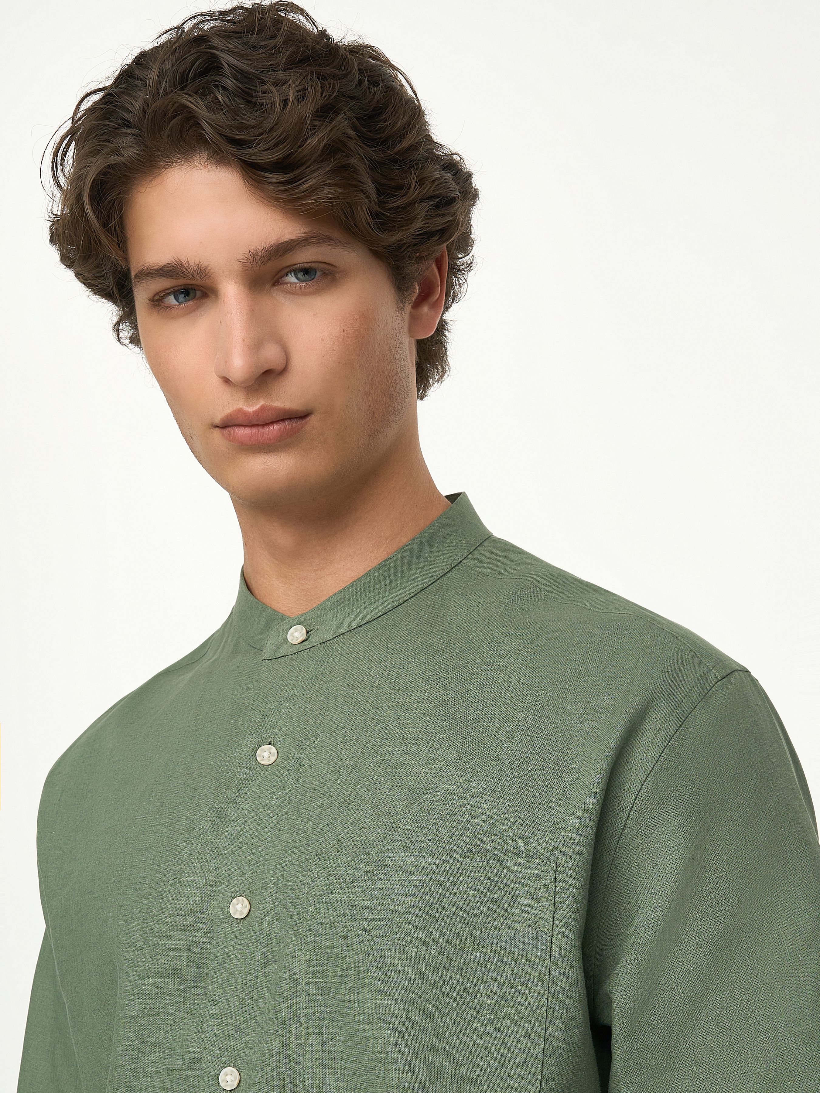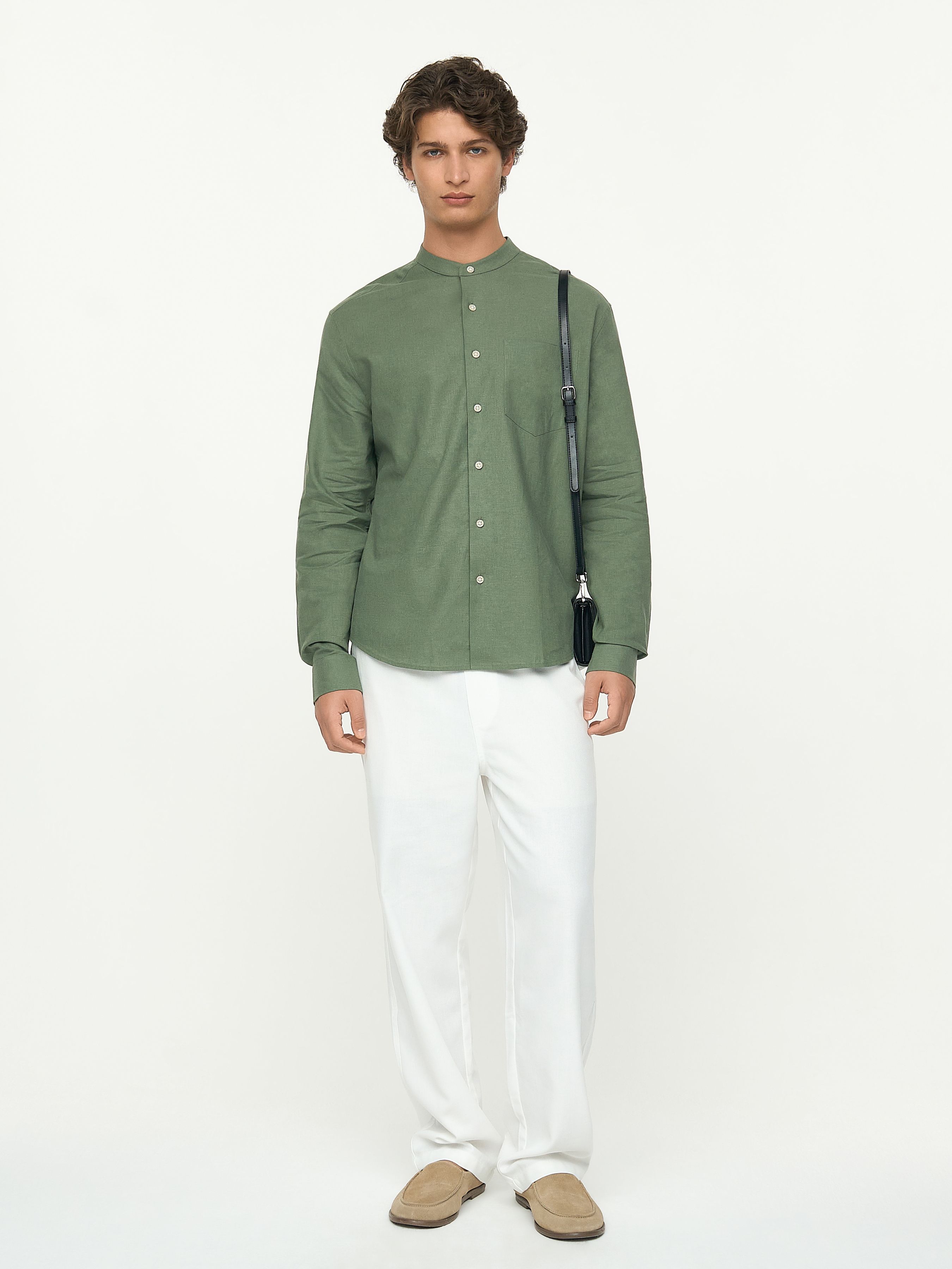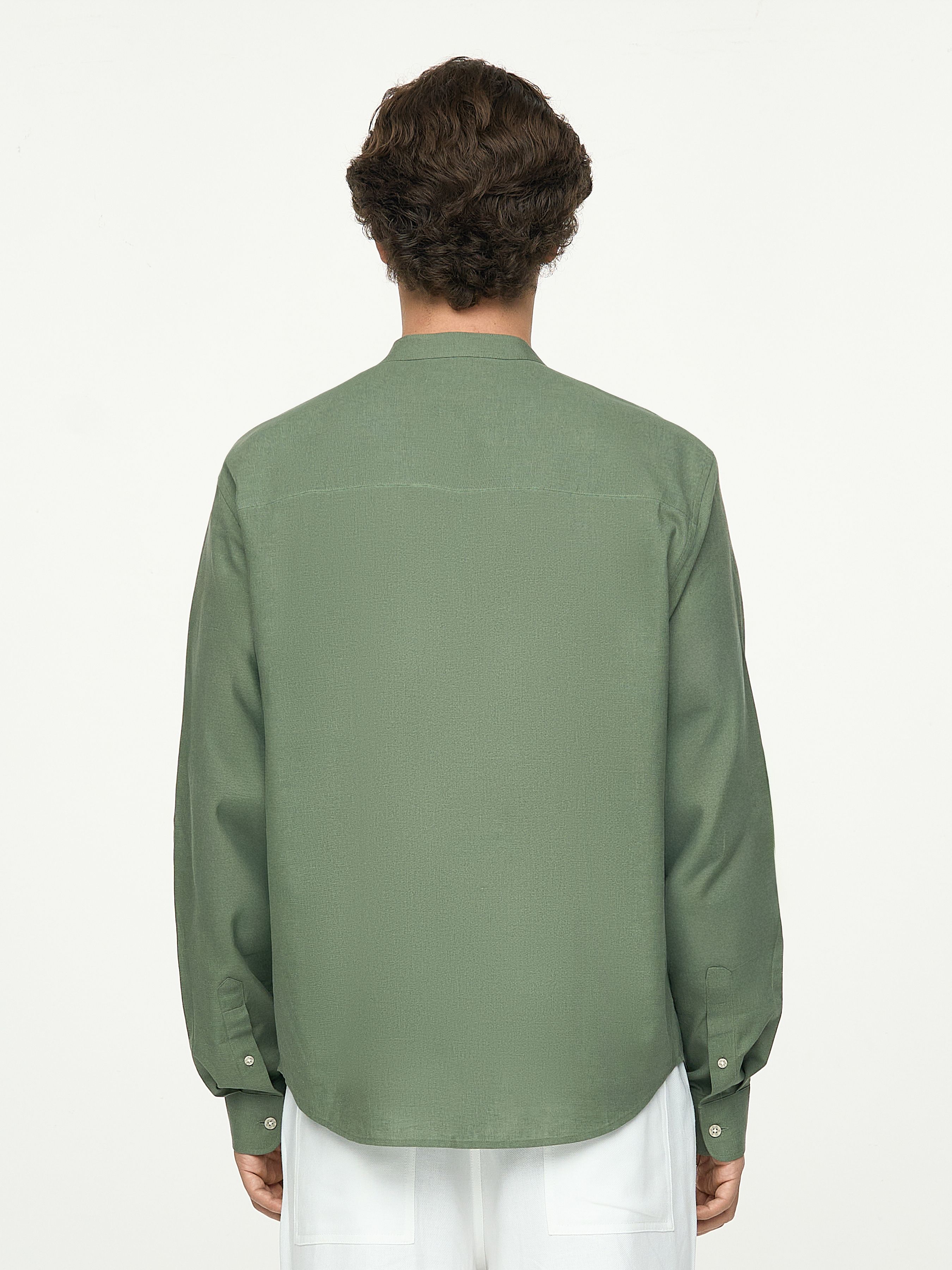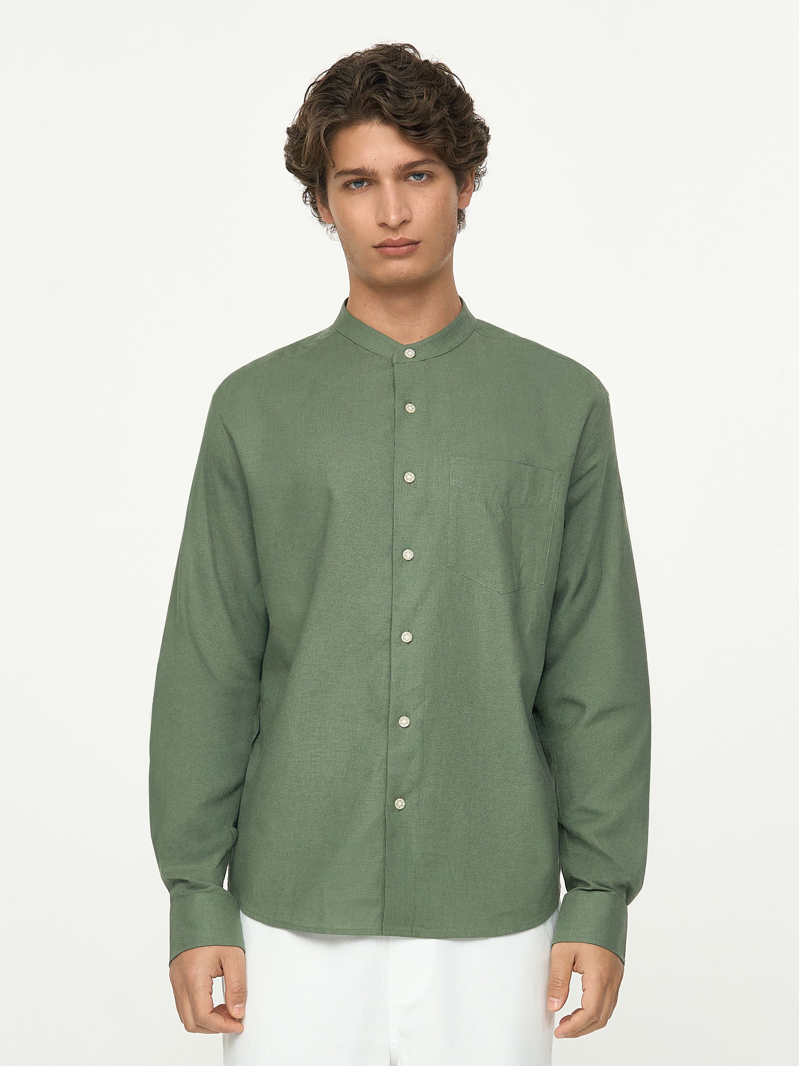 РУБАШКА ИЗ ЛЬНА И ХЛОПКА С ВОРОТНИКОМ МАО