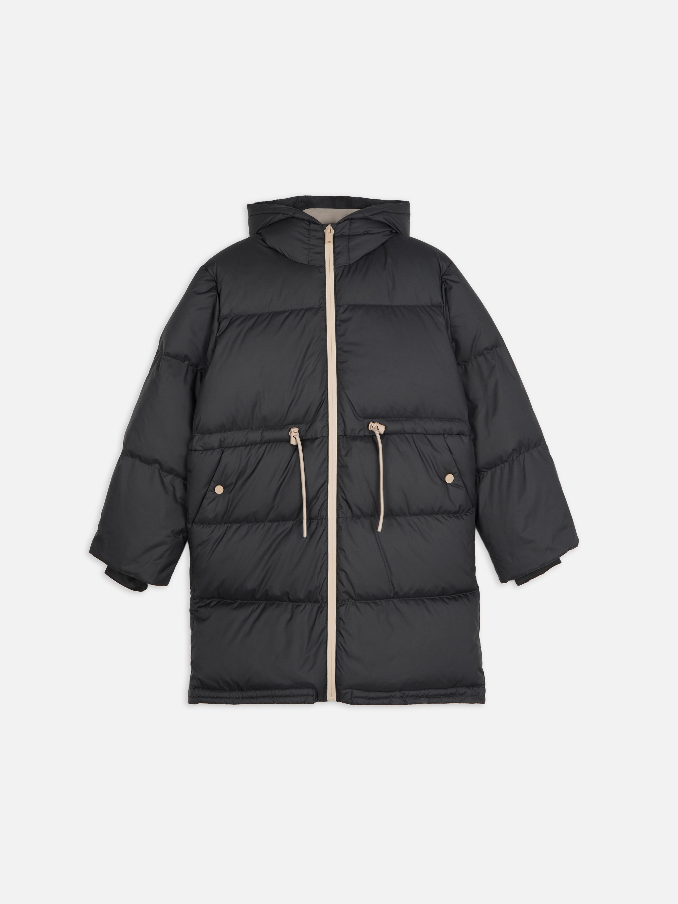 Удлиненный зимний пуховик с капюшоном. Непродуваемая ткань с водоотталкивающим покрытием. Утеплитель - натуральный пух / перо. Флисовая подклака в карманах, манжеты внутри рукавов на подоле, водонепроницаемая прорезиненная молния. Рекомендованный температурный режим до -20 градусов.