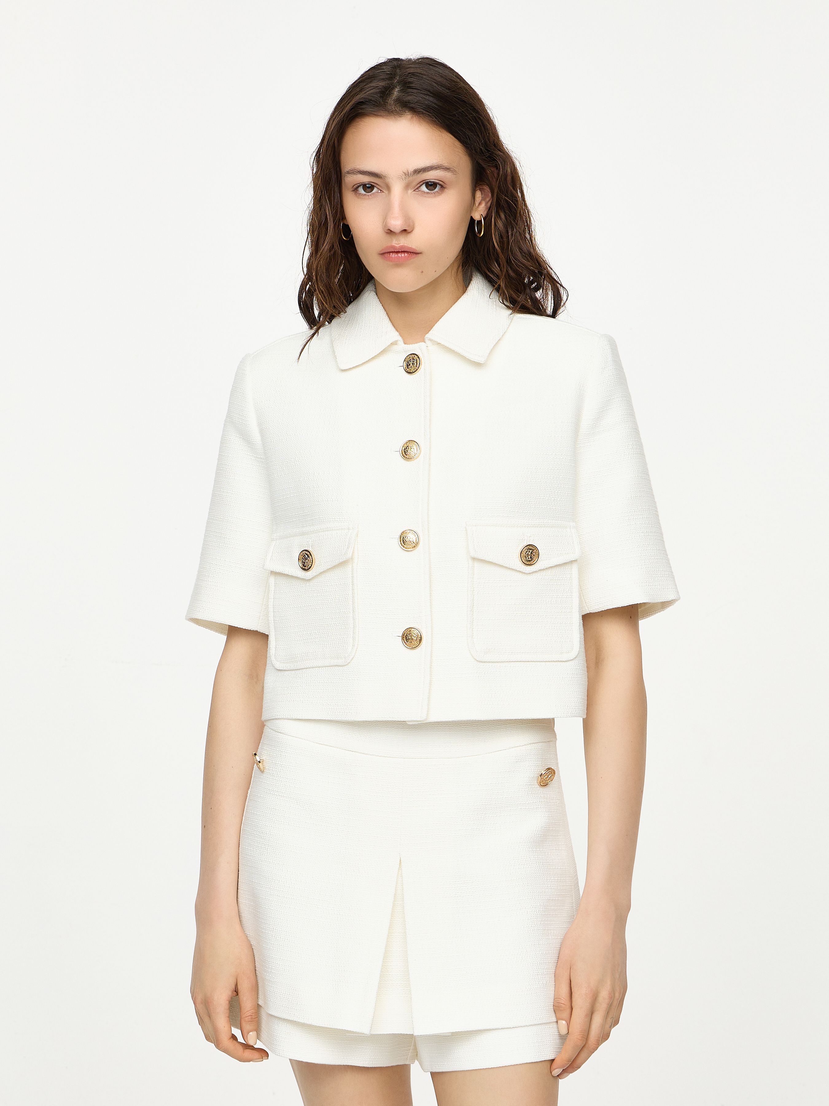 TWEED BLAZER WITH GOLD BUTTONS