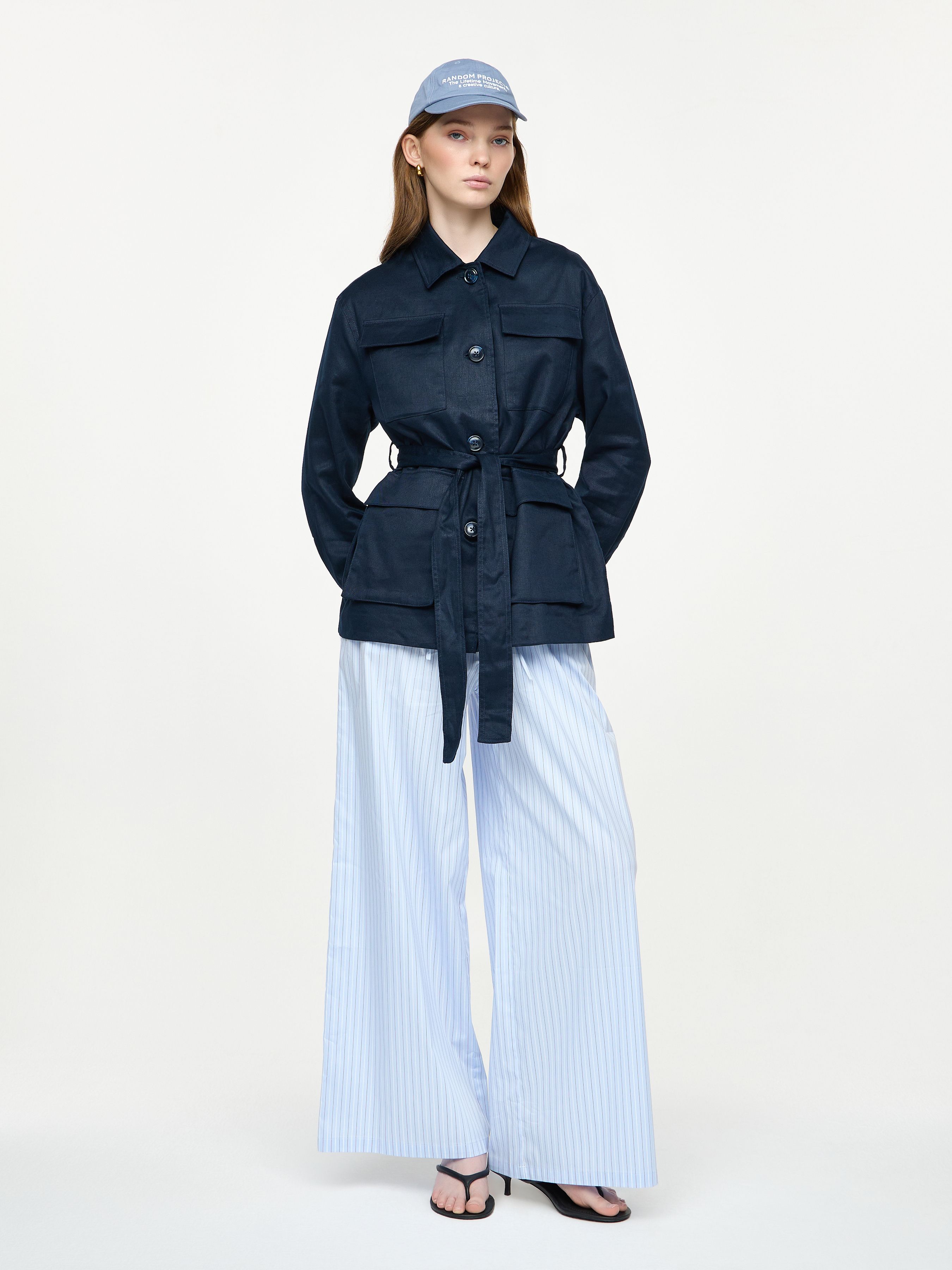 LINEN BLEND JACKET WITH BELT